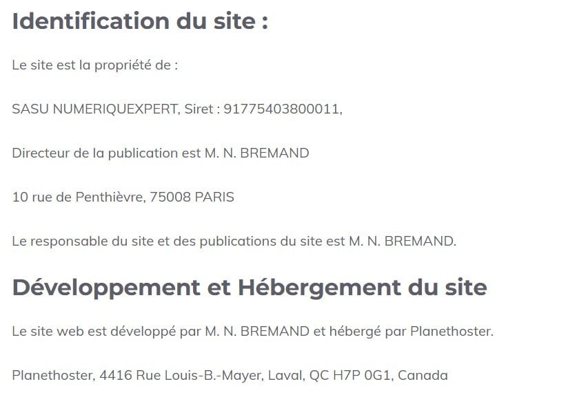 Le site web est hébergé par O2switch, 222-224 Boulevard Gustave Flaubert, 63000 Clermont-Ferrand, Siret : 510 909 807 00032, RCS Clermont Ferrand, SAS au capital de 100 000€, numéro de téléphone : 04 44 44 60 40, abuse@o2switch.fr.